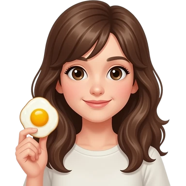 fried egg with a cute adult girl holding it emoji