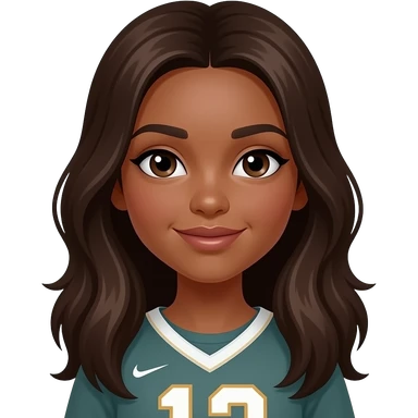 Ein Mädchen mit dem Hobby fußball lange dunkel braune Haare und caramel Hautfarbe emoji
