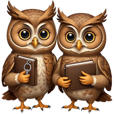 Сова передает ключи другой сове, у обеих довольные лица emoji