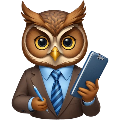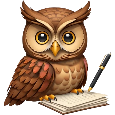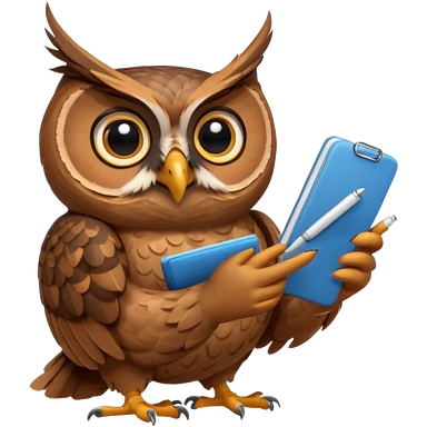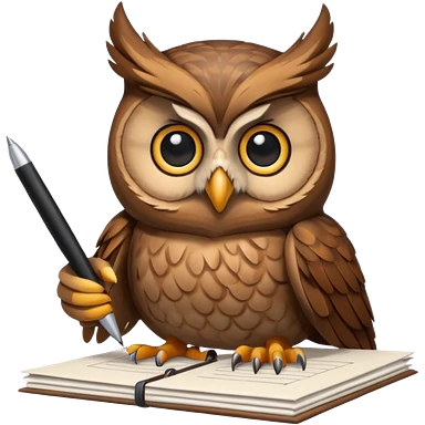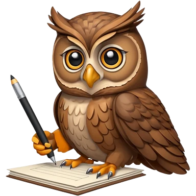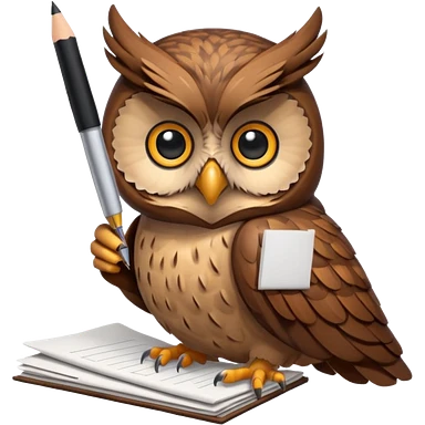 Сова держит ручку рядом стопка бумаг emoji