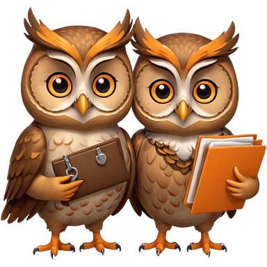 Сова передает ключи другой сове, у обеих довольные лица и папка с документами emoji
