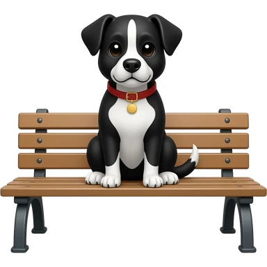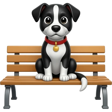 чёрно-белый пёс, сидит на скамейке как emoji