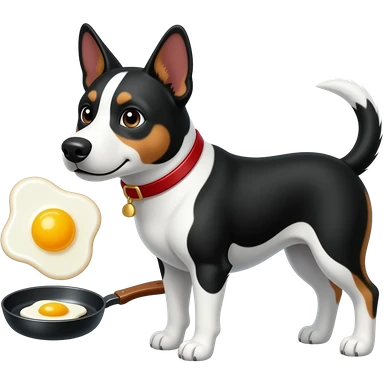чёрно-белый пёс, жарит яичницу emoji