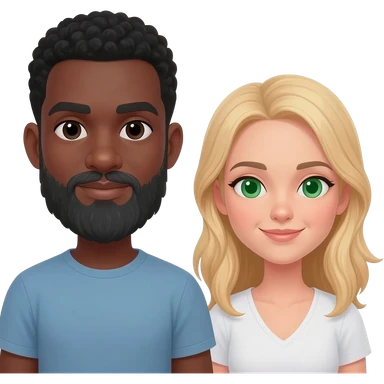 interracial couple with a black man and a gray beard and a white woman with blonde hair and green eyes Man has gray beard and woman has green eyes emoji