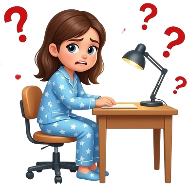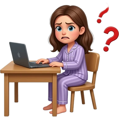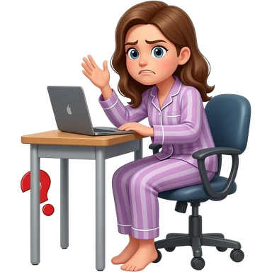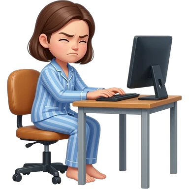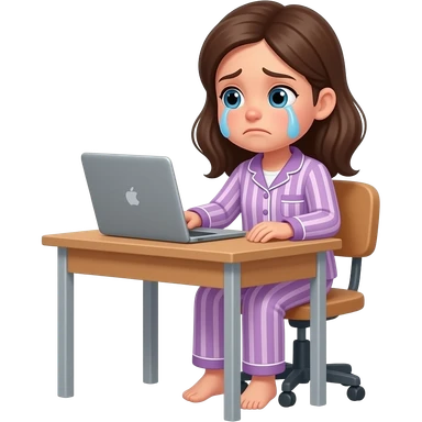a girl in her pajama sitting at the desk offended and about to cry emoji