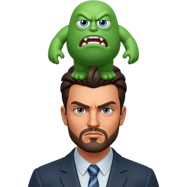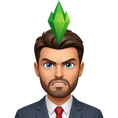 a sim from sims with his green sim plombob above (!) the head and expression of anger on his face emoji