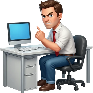 a guy sitting at the desk turning around to us with angry expression emoji
