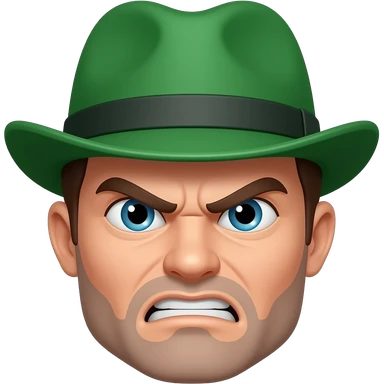 a sim from sims with his green sim plombob above the head and expression of anger on his face emoji