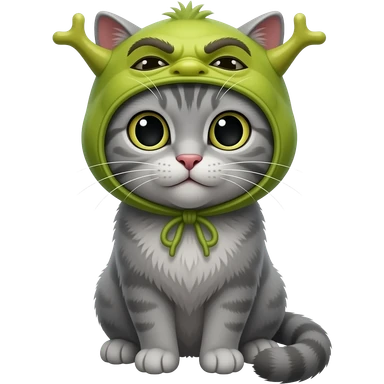 a grey cat with a shrek-ears hat emoji