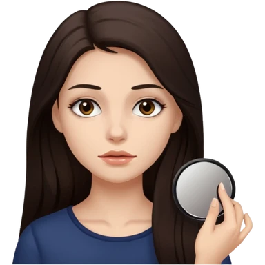 Mujer de pelo cafe oscuro y largo, y tez blanca. Desmaquillandose emoji