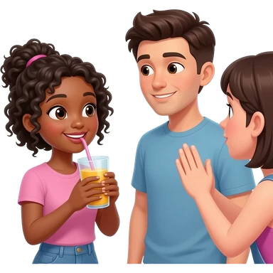 Black girl drinking a drink and talking to a guy that is not her man then a girl walks up to here and smacks her emoji