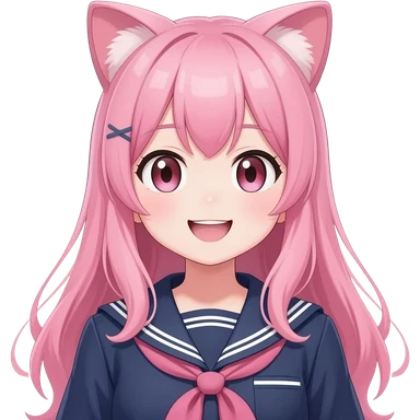anime cat girl with a sailor outfit and pink hair and cat ears emoji