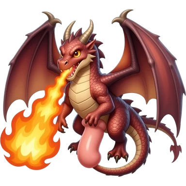 dragon with wings and produce fire in full zenith and full like ejaculation in hot sexy compared to the penis of male ekaculated semen at its peak emoji