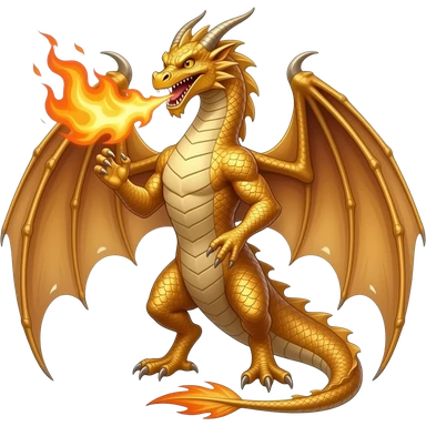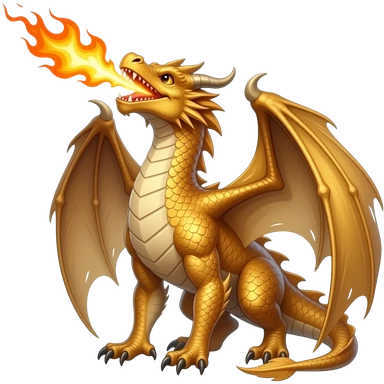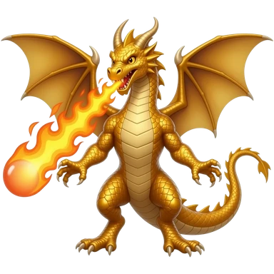Golden dragon with wings and produce fire in full zenith condition emoji