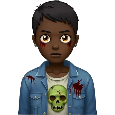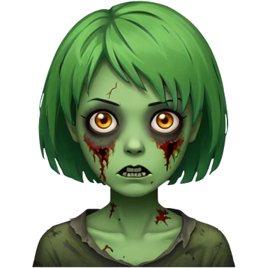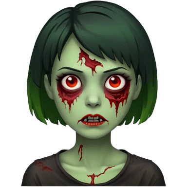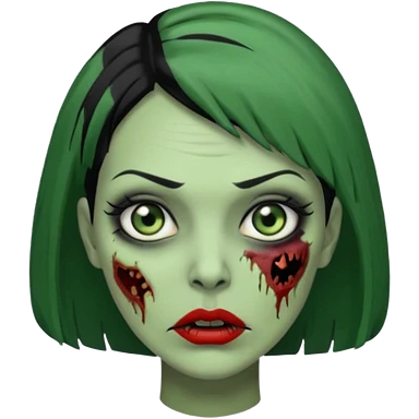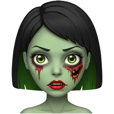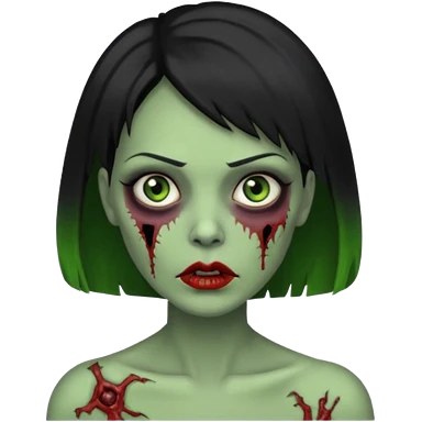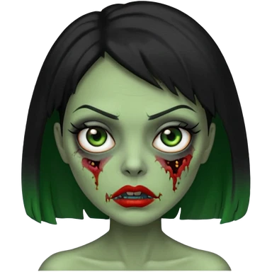 Uma zumbi de pele verde cabelo chanel preto emoji