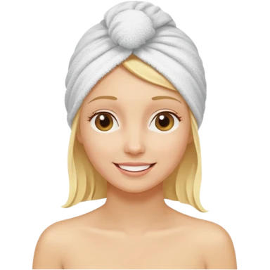 blond happy women with a towel on head after shower emoji