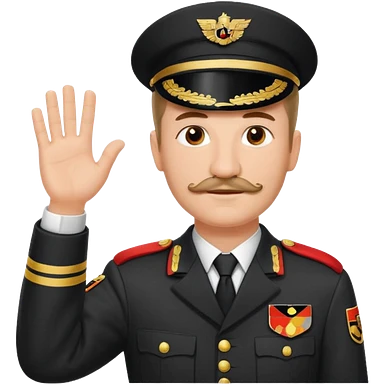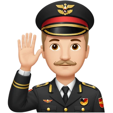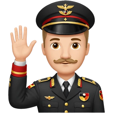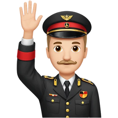 An image about an german with a small square like mustage with flat hair raising his hand in an german uniform with a red band attached to his arm emoji