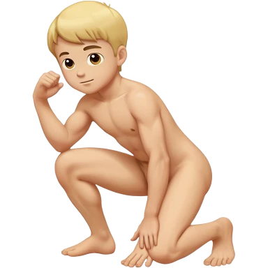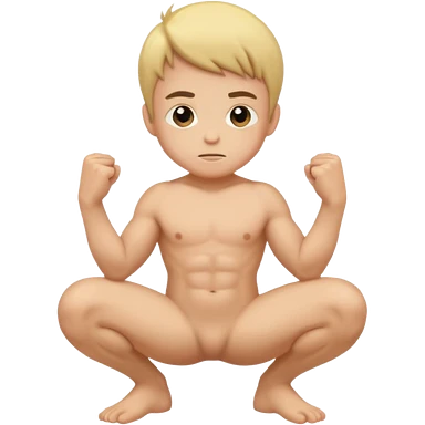Kid boy gay naked squatting buff emoji