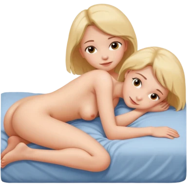 an naked girl with hug on a bed all on fours emoji