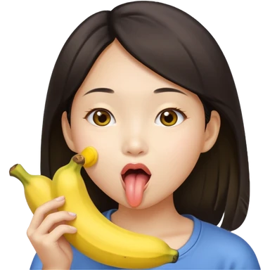 an asian girl licking an banana emoji