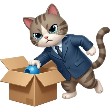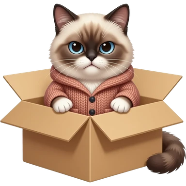 create a grumpy cat trying to put coat in box emoji