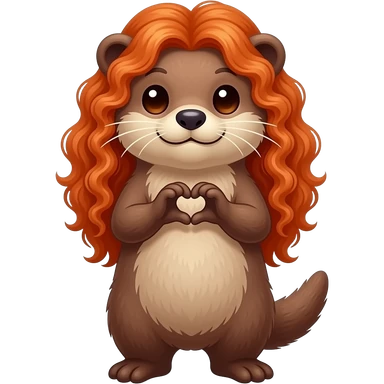 River otter with long curly red hair on head making heart hands with heart shaped eyes emoji