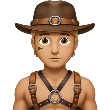 a leather Dom with a leather hat and chest harness emoji