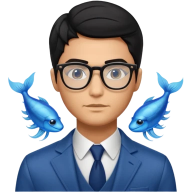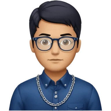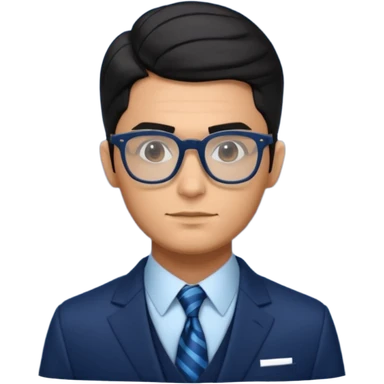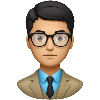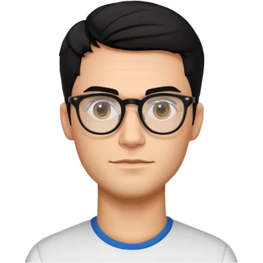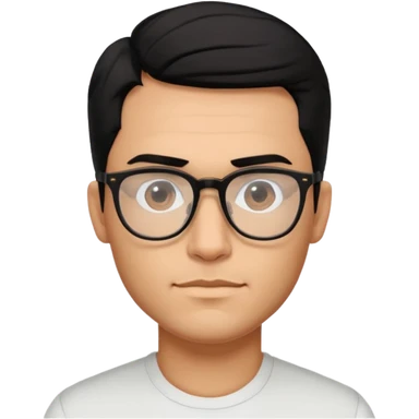 make a guy from portugal that has glasses and has a good jawline and a little masculine and black hair that spreads to the sides and make him glossy and shiny emoji