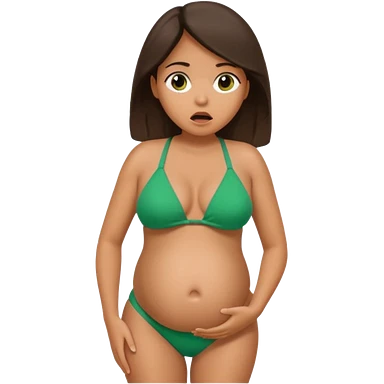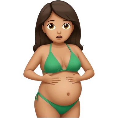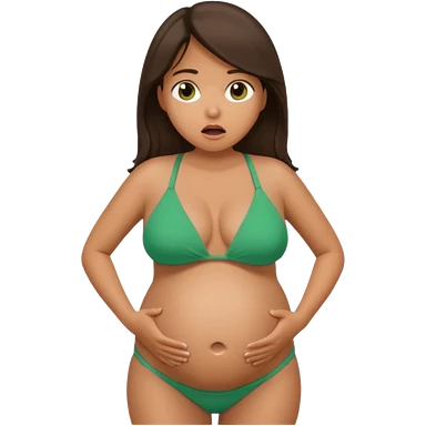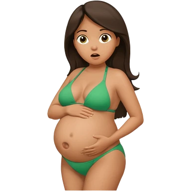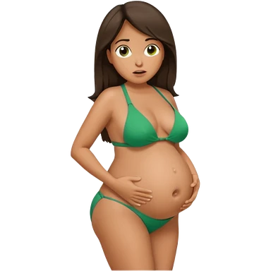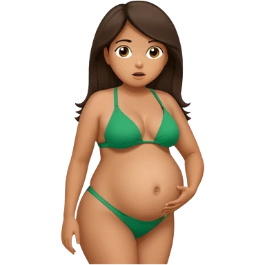 Latina girl, tan skin, pregnant, green bikini, shocked face, huge belly, side view emoji