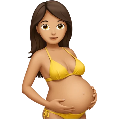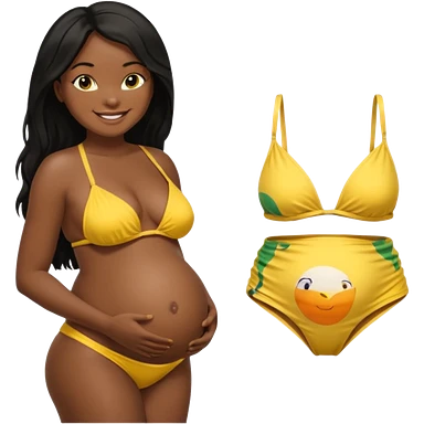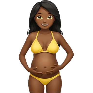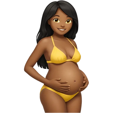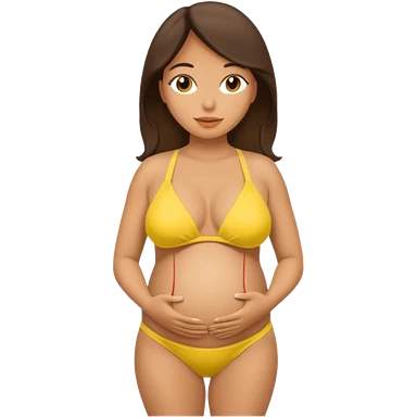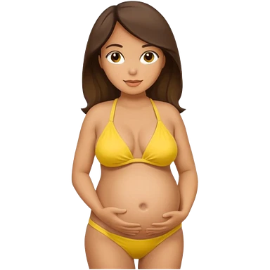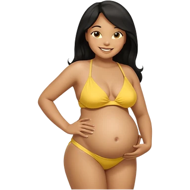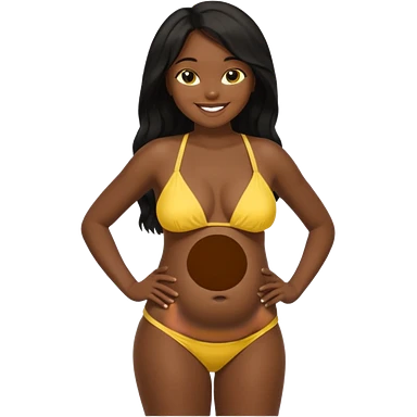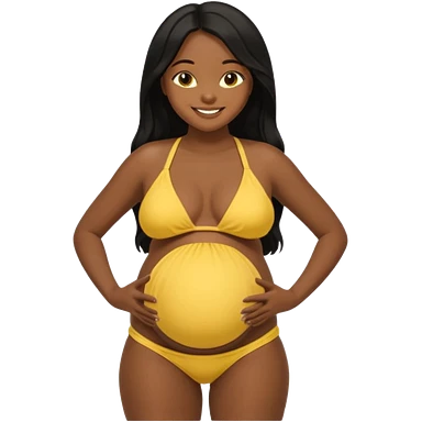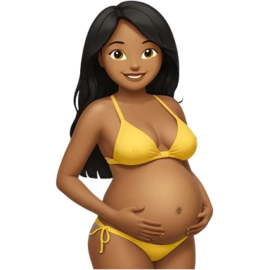 Latina woman, tan skin, pregnant, yellow bikini. emoji