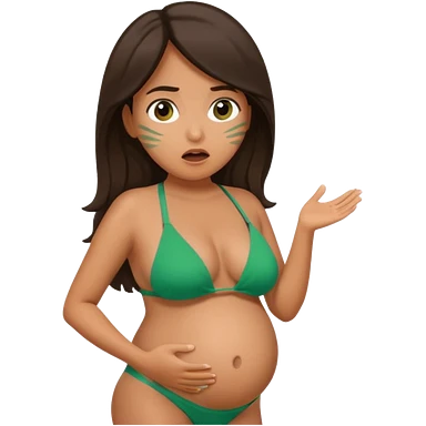Latina girl, tan skin, pregnant, green bikini, shocked face. emoji