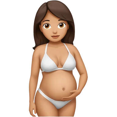 Latina woman, tan skin, pregnant, white bikini. emoji