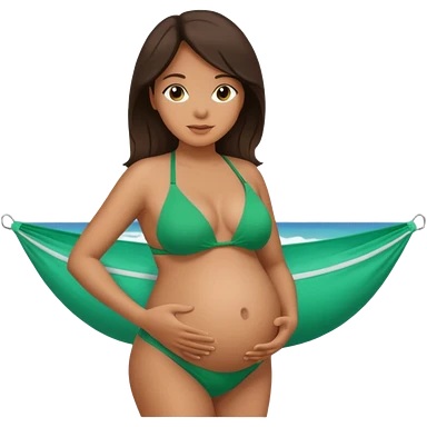 Latina girl, tan skin, pregnant, green bikini. emoji