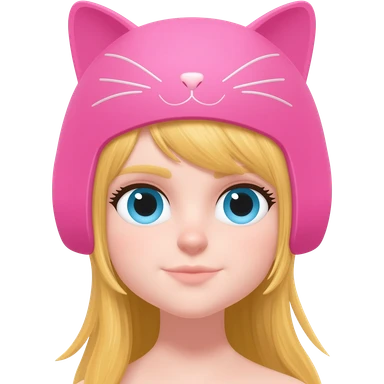 fille blonde yeux bleu avec casque chat rose emoji