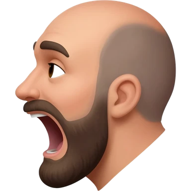 In profile a bald 35 year old man mouth wide open, mustache and beard emoji