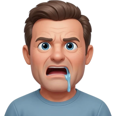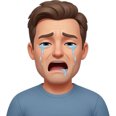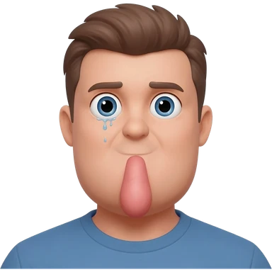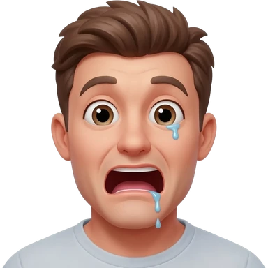 Crying thirty year old guy with mouth wide open and drooling from one side of his mouth emoji