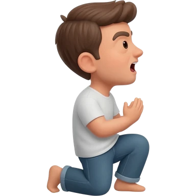 thirty year old guy with open mouth on his knees in profile emoji