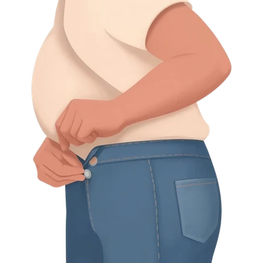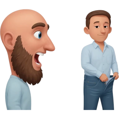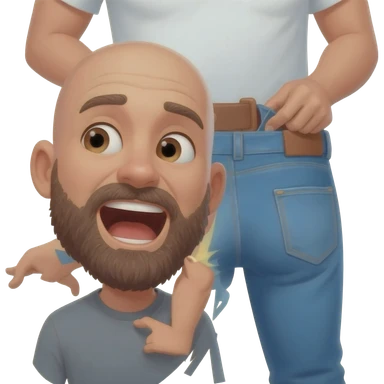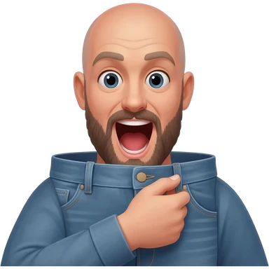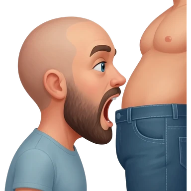 In profile a bald 35 year old guy with beard and gaping mouth waiting for a man to unbutton his jeans emoji