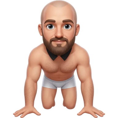 bald bearded man in underwear and collar stands on all fours emoji