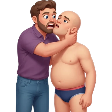 Tall man choking a shorter bald man in underwear emoji