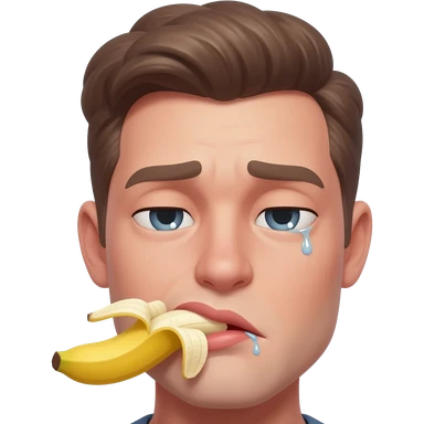 thirty year old guy with his mouth filled by a huge peeled banana drooling from one side of his mouth and tear in one eye emoji