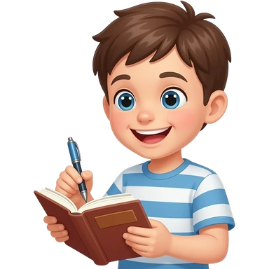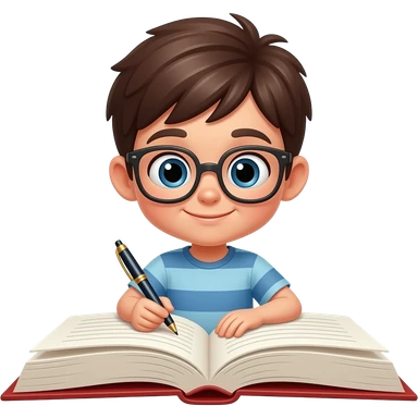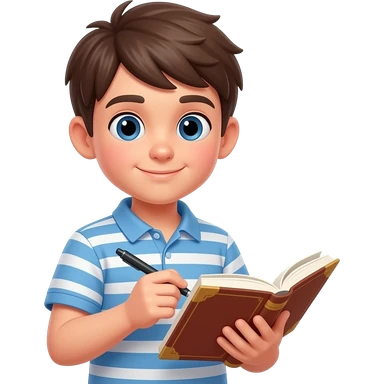 Ek kitab ka emoji bnao jismein Ek ladka baitha ho aur uske hath mein pen ho aur vah kitab per kuchh likh raha hun emoji