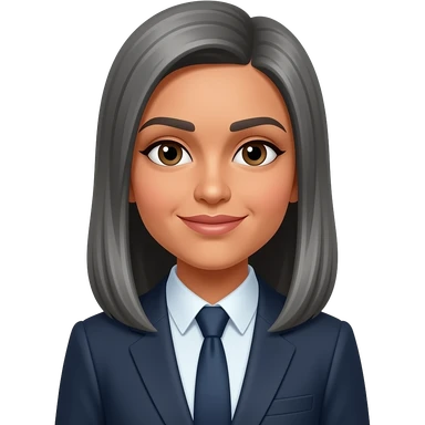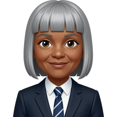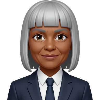 dark skinned female 60 years old with straight grey hair with a fringe using suit. remove dot on forehead emoji
