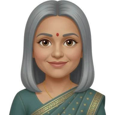 Indian female 60 years old with straight grey hair using suit no dot on forehead emoji