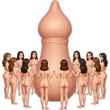 Naked women surrounding a massively large dick emoji