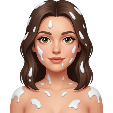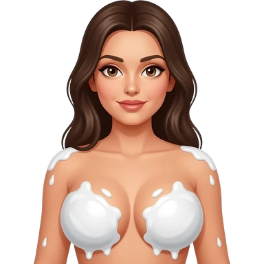 Naked beautiful woman with massive boobs covered in white cream emoji