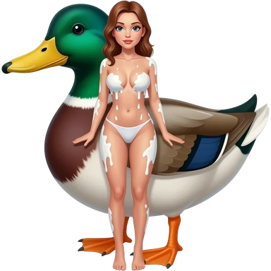 Naked beautiful woman covered in cum with a shadow duck emoji