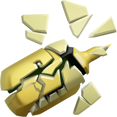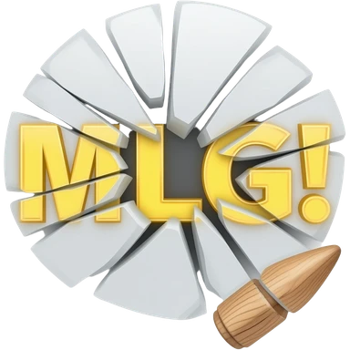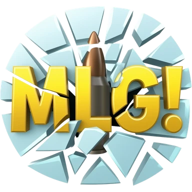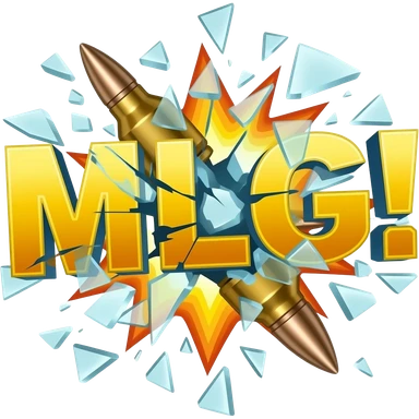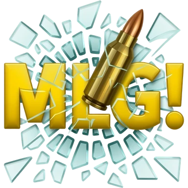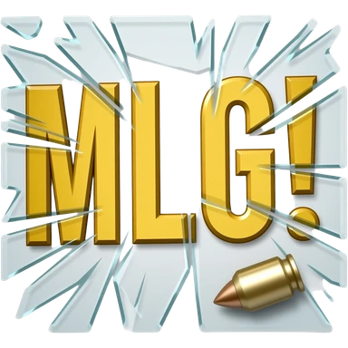 Надпись MLG! жёлтого цвета рассыпалась на мелкие осколки как стекло от выстрела пули emoji