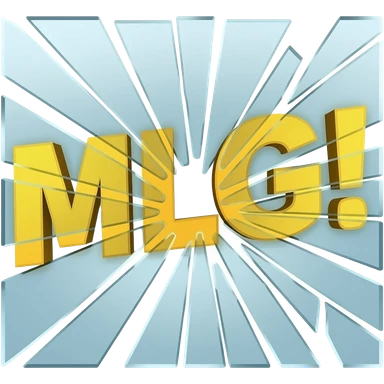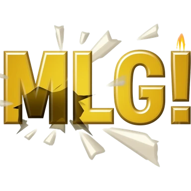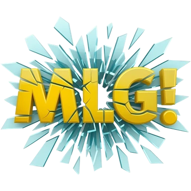 Надпись MLG! жёлтого цвета и рассыпалась на мелкие осколки как стекло от выстрела пули emoji