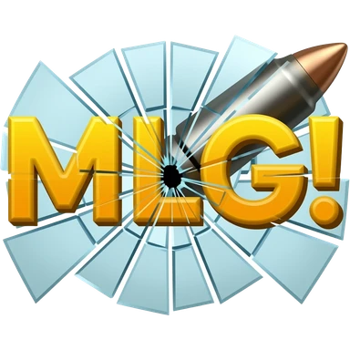 Надпись MLG! жёлтого цвета разорвана в дребезги как стекло пулей emoji